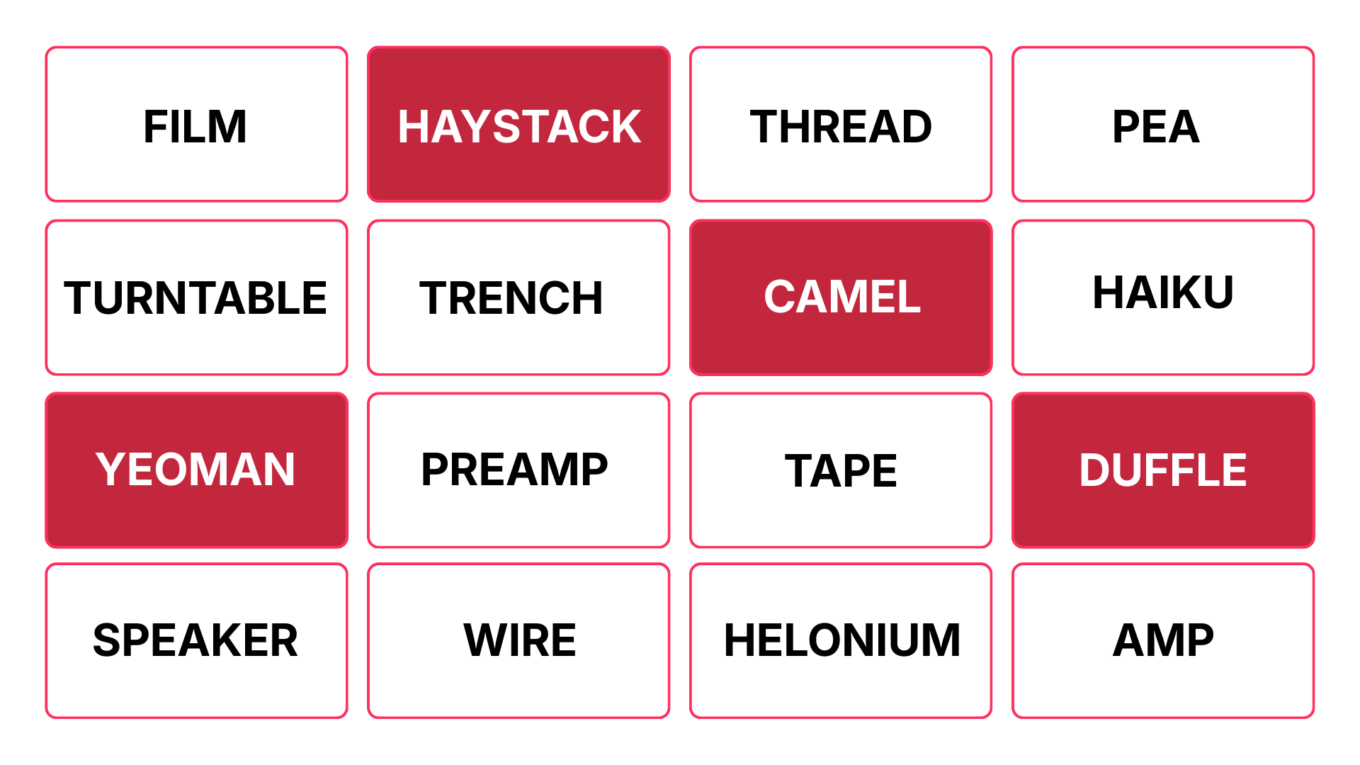 Connections is a word game that challenges players to find themes between words. That day’s puzzle included purple category titled “Starting with Homophones of Greetings” and a green category titled “Kinds of Coats.” It also included these words: